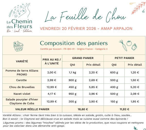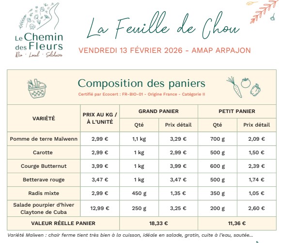 Chaque semaine notre producteur de légumes « LE CHEMIN DES FLEURS »
