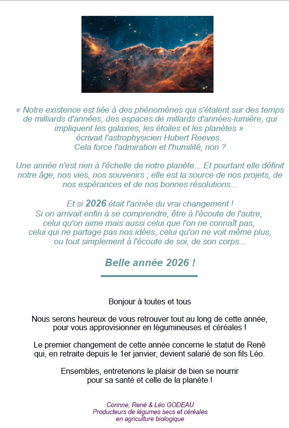Les vœux pour 2026 de Corinne Godeau notre productrice de légumes secs