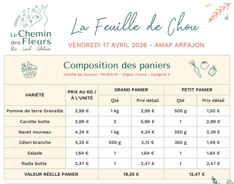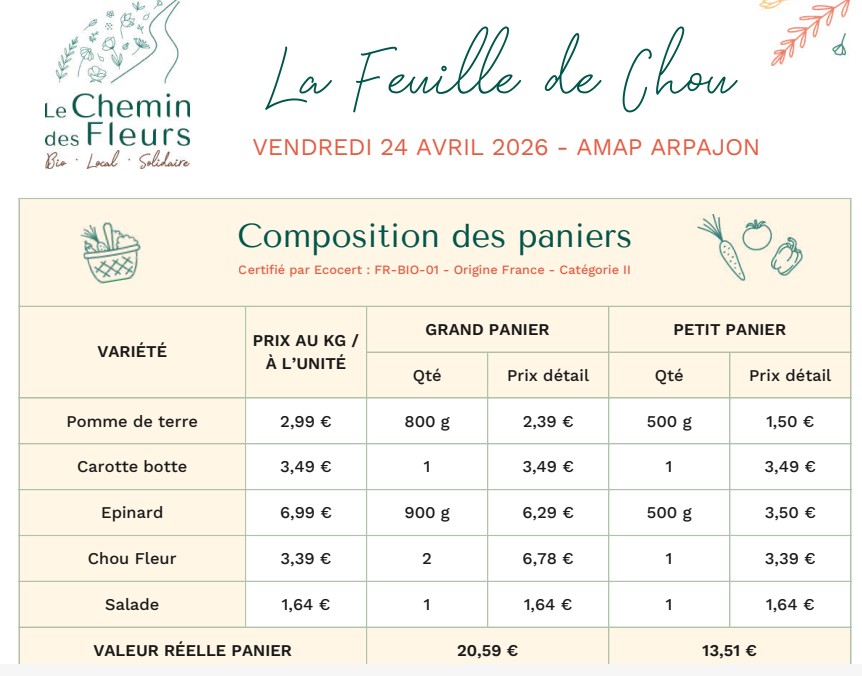 Chaque semaine notre producteur de légumes « LE CHEMIN DES FLEURS »